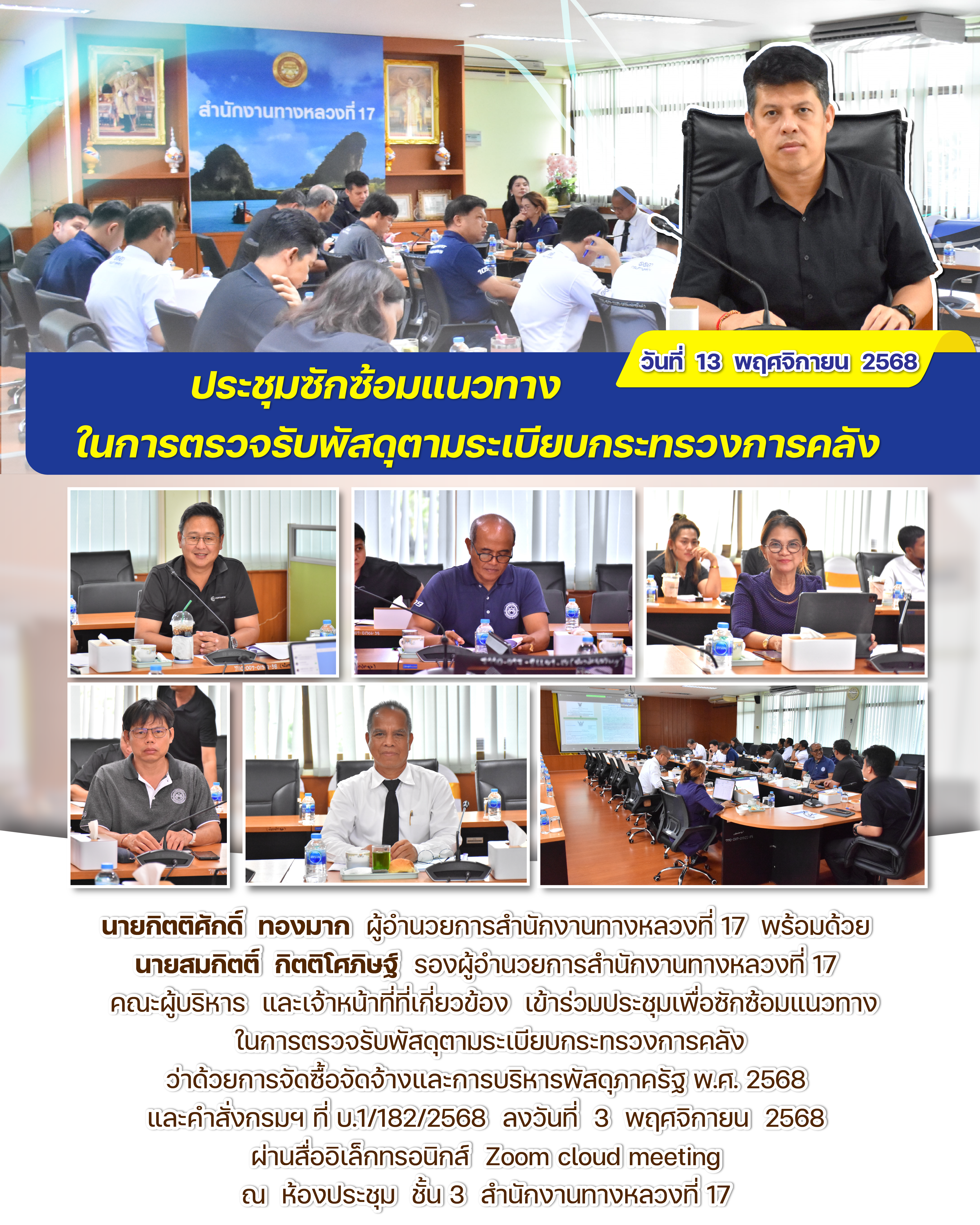 ประชุมซักซ้อมแนวทาง ในการตรวจรับพัสดุตามระเบียบกระทรวงการคลัง วันที่ 13 พฤศจิกายน 2568