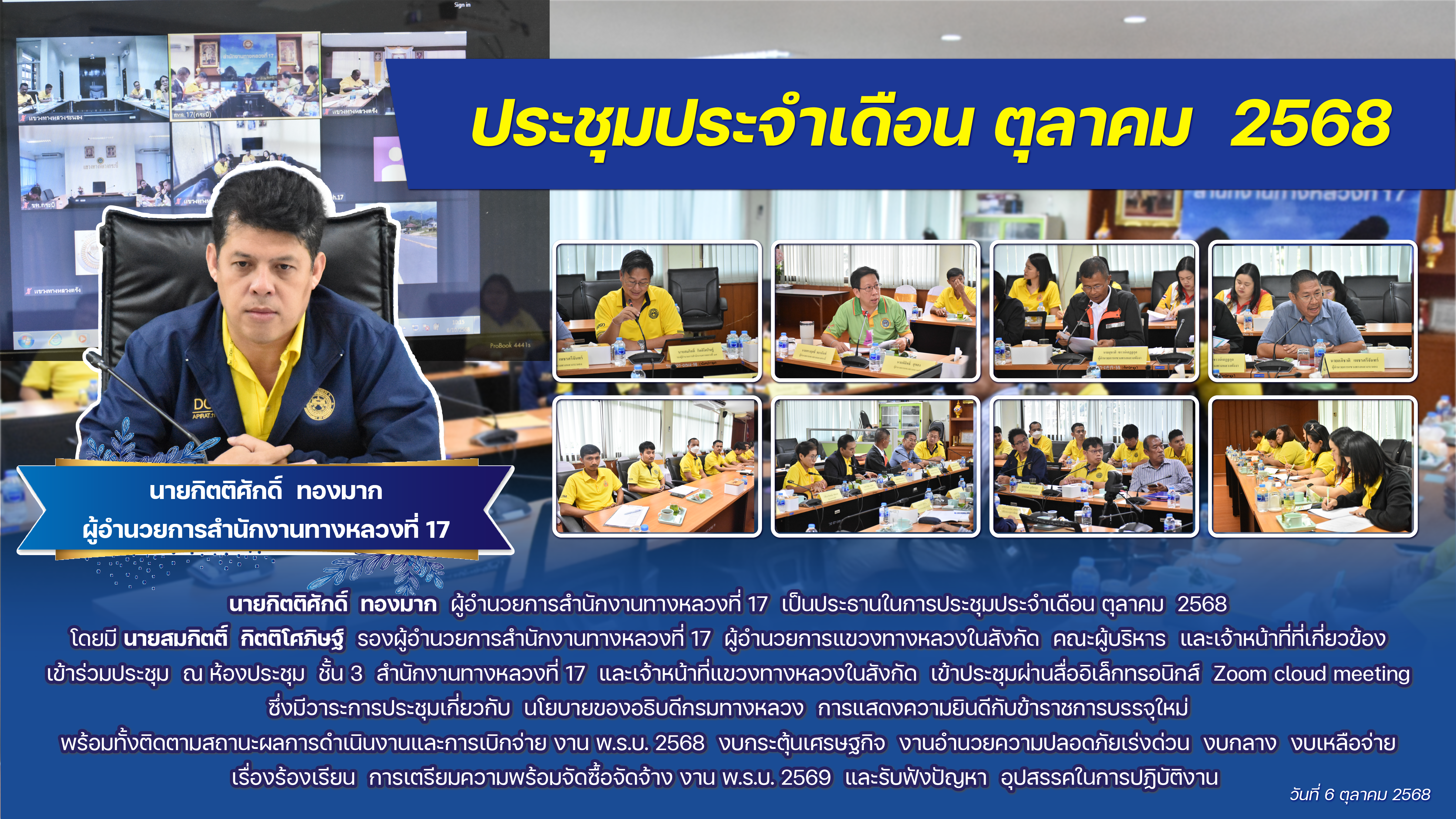 ประชุมประจำเดือน ตุลาคม 2568 วันที่ 6 ตุลาคม 2568