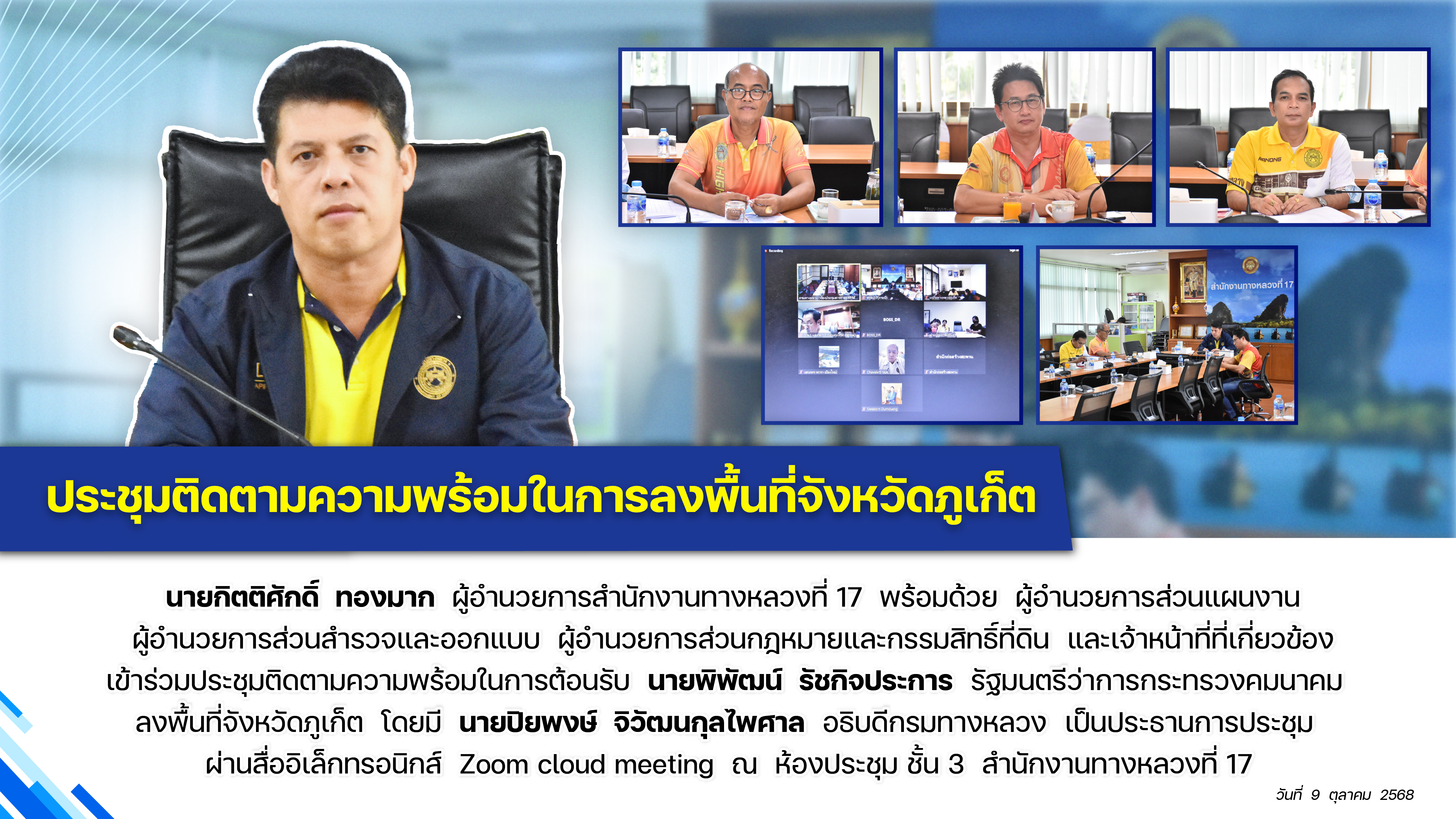 ประชุมติดตามความพร้อมในการลงพื้นที่จังหวัดภูเก็ต วันที่ 9 ตุลาคม 2568