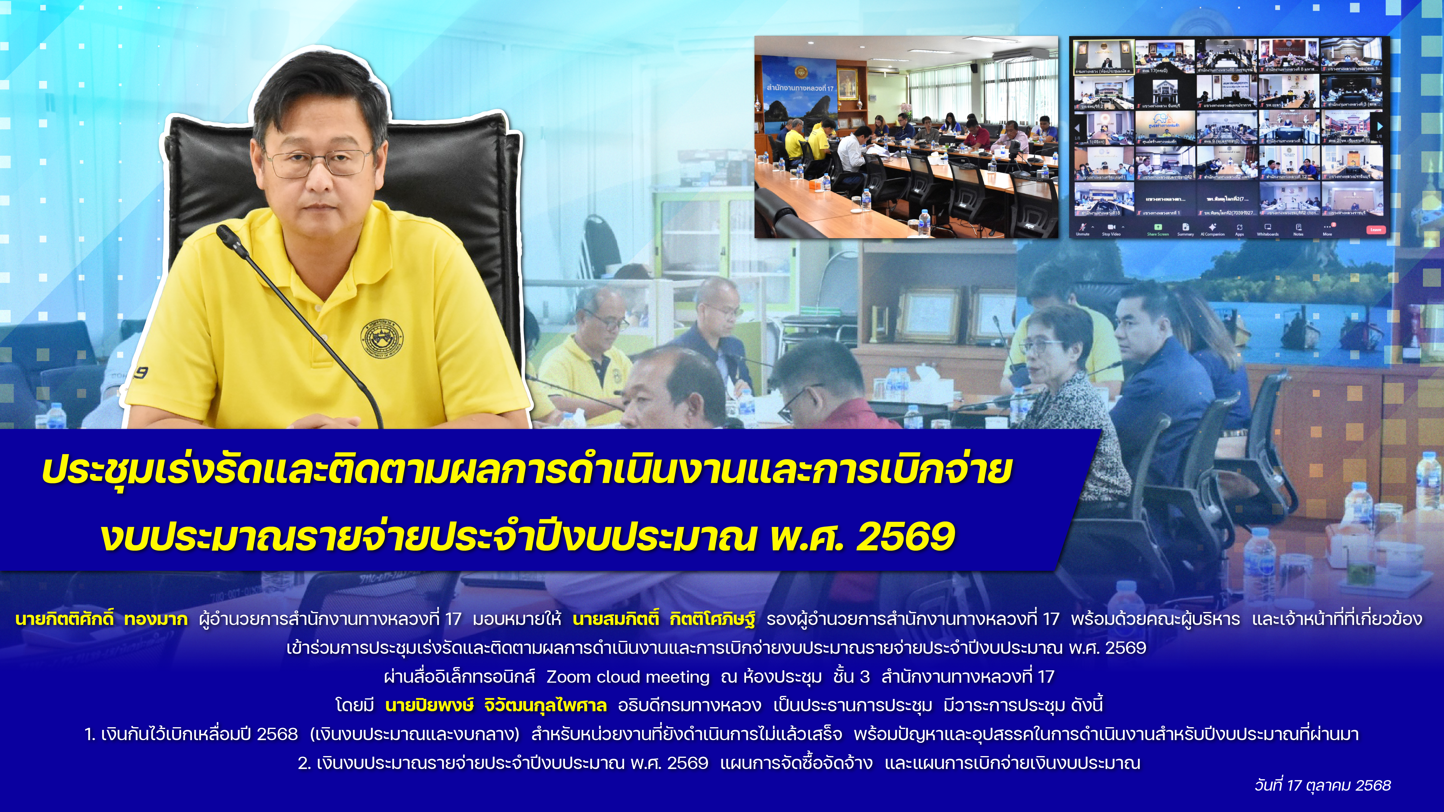 ประชุมเร่งรัดและติดตามผลการดำเนินงานและการเบิกจ่าย งบประมาณรายจ่ายประจำปีงบประมาณ พ.ศ. 2569 วันที่ 17 ตุลาคม 2568