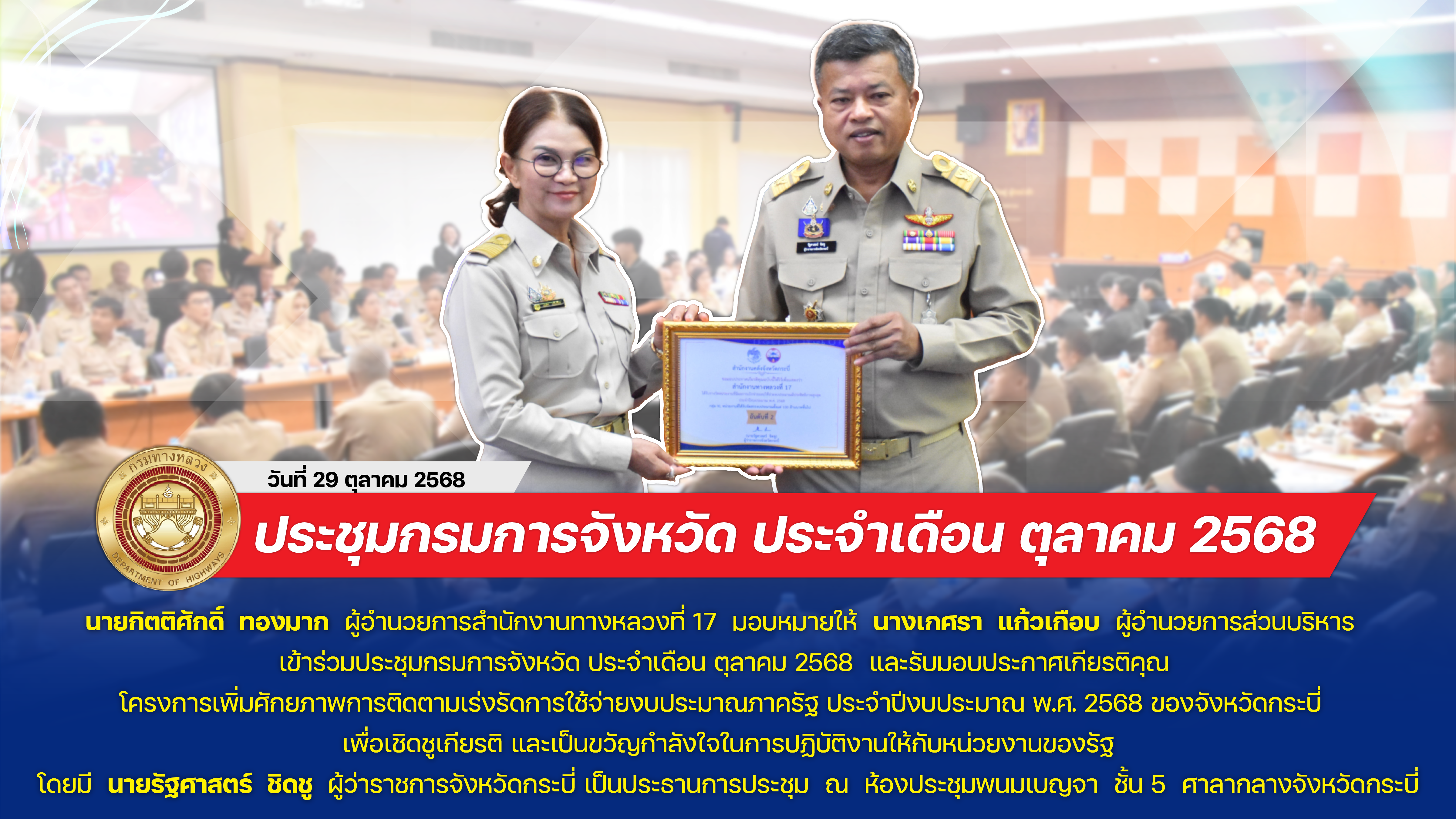ประชุมกรมการจังหวัด ประจำเดือน ตุลาคม 2568 วันที่ 29 ตุลาคม 2568