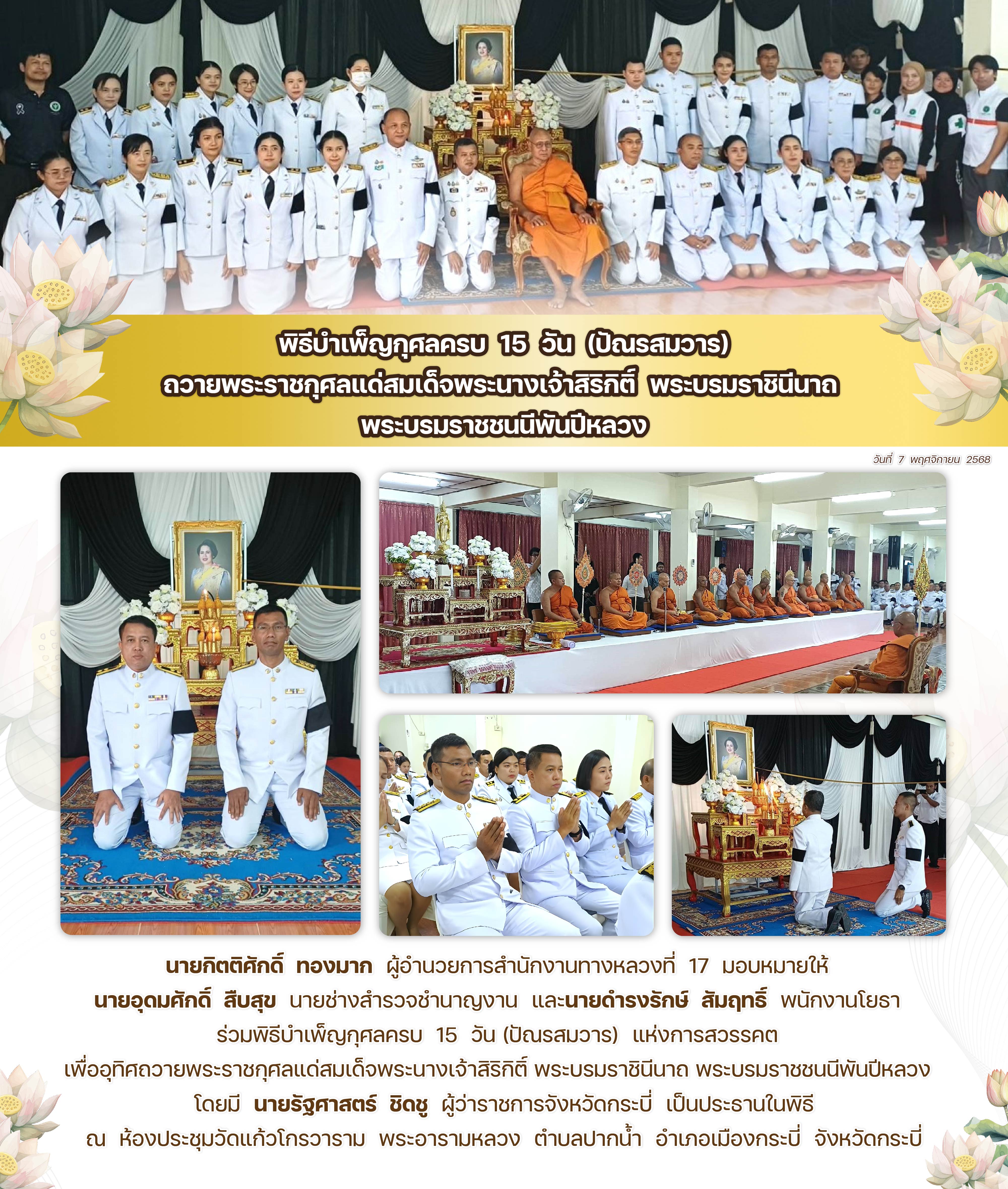พิธีบำเพ็ญกุศลครบ 15 วัน (ปัณรสมวาร) ถวายพระราชกุศลแด่สมเด็จพระนางเจ้าสิริกิติ์ พระบรมราชินีนาถ พระบรมราชชนนีพันปีหลวง วันที่ 7 พฤศจิกายน 2568