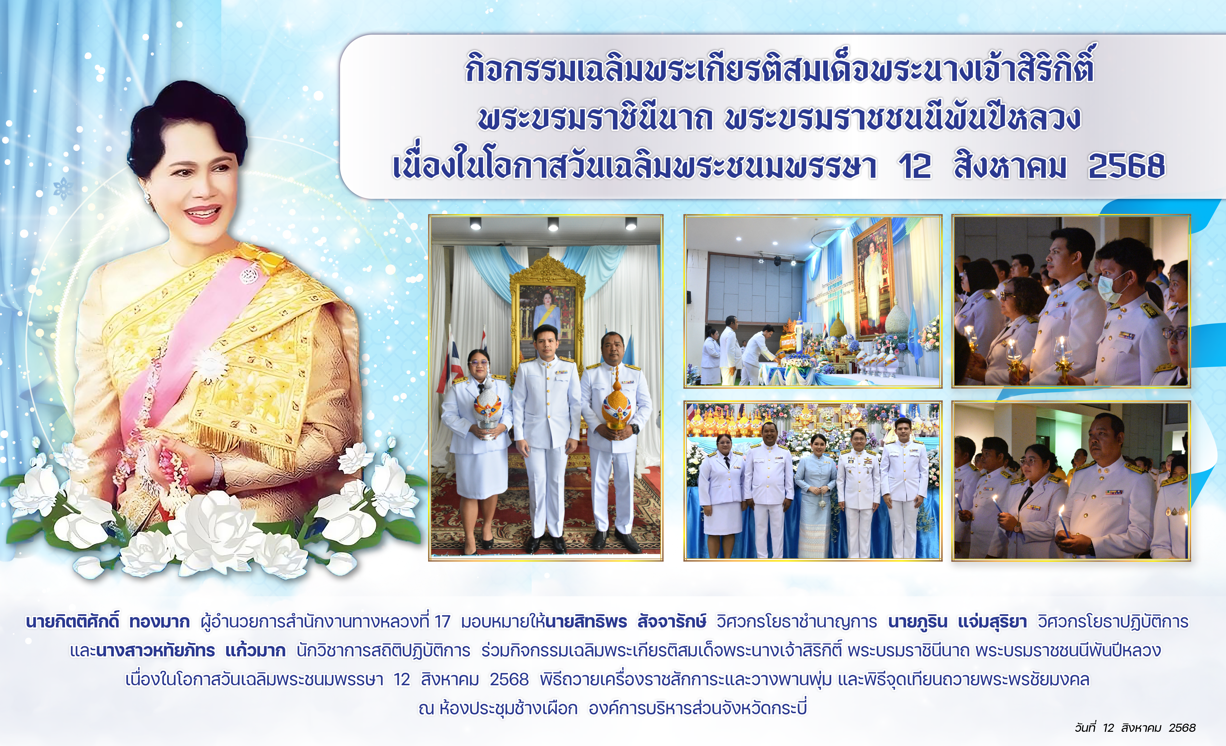 กิจกรรมเฉลิมพระเกียรติสมเด็จพระนางเจ้าสิริกิติ์ พระบรมราชินีนาถ พระบรมราชชนนีพันปีหลวง เนื่องในโอกาสวันเฉลิมพระชนมพรรษา 12 สิงหาคม 2568 วันที่ 12 สิงหาคม 2568
