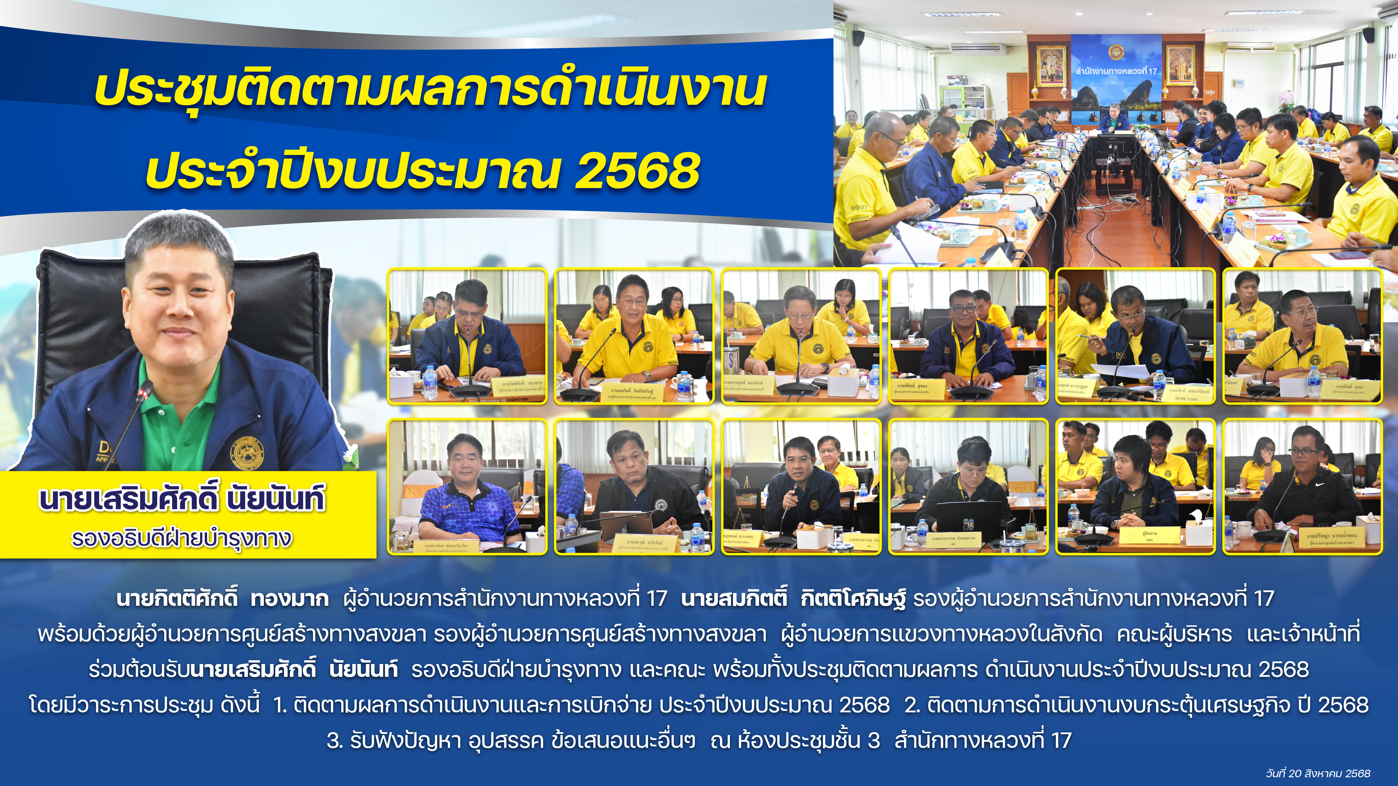 ประชุมติดตามผลการดำเนินงาน ประจำปีงบประมาณ 2568 วันที่ 20 สิงหาคม 2568