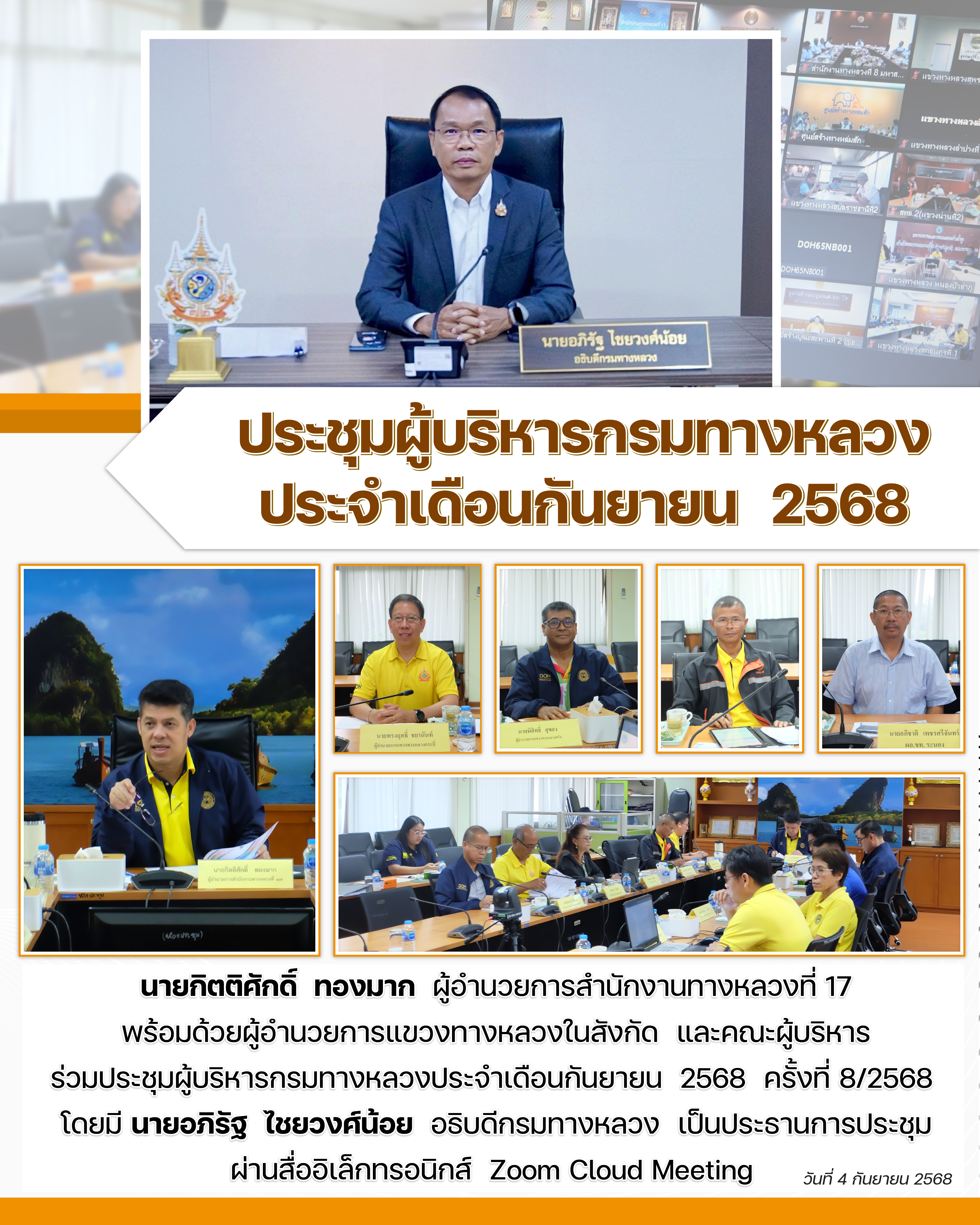 ประชุมผู้บริหารกรมทางหลวง ประจำเดือนกันยายน 2568 วันที่ 4 กันยายน 2568