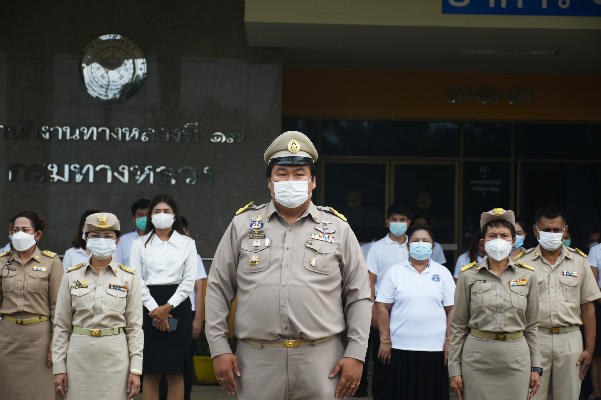 นายทรงยศินทร์ ชนปทาธิป ผู้อำนวยการสำนักงานทางหลวงที่ 17 นำคณะผู้บริหาร ข้าราชการ และเจ้าหน้าที่ ร่วมเคารพธงชาติและร้องเพลงชาติไทย