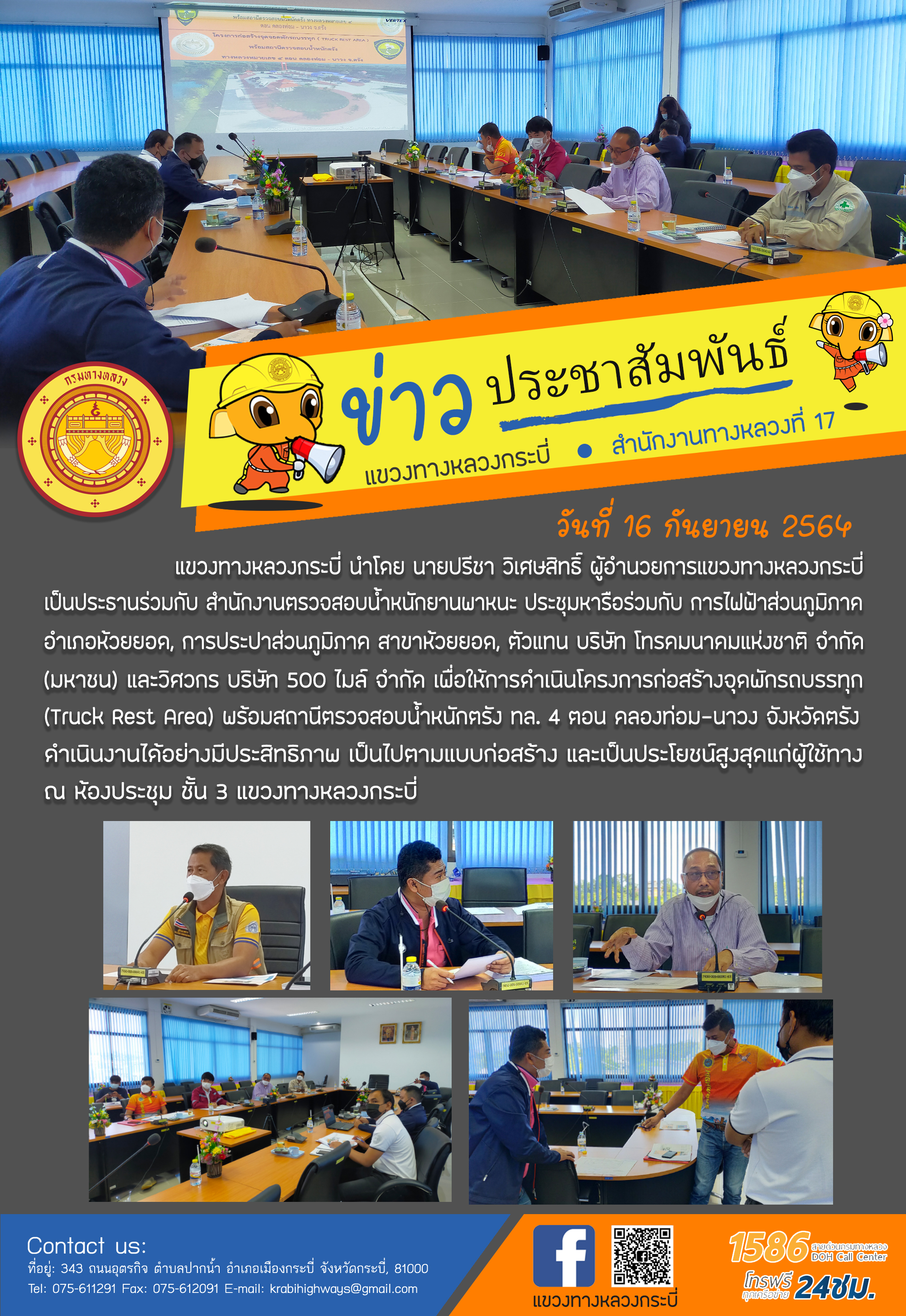 แขวงทางหลวงกระบี่ ร่วมพิธีเปิดศูนย์ปฏิบัติการป้องกันและลดอุบัติเหตุทางถนนและทางทะเลช่วงเทศกาลปีใหม่ พ.ศ. 2565