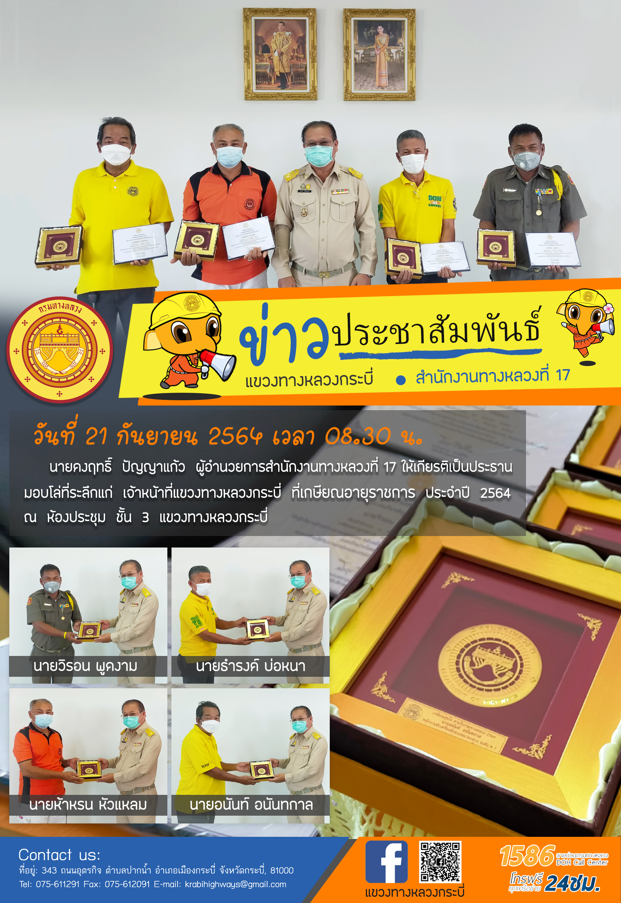 ซึ่งเจ้าหน้าที่แขวงทางหลวงกรบี่ ที่เกษียณอายุราชการ ประจำปี 2564 มี 4 ราย ดังนี้