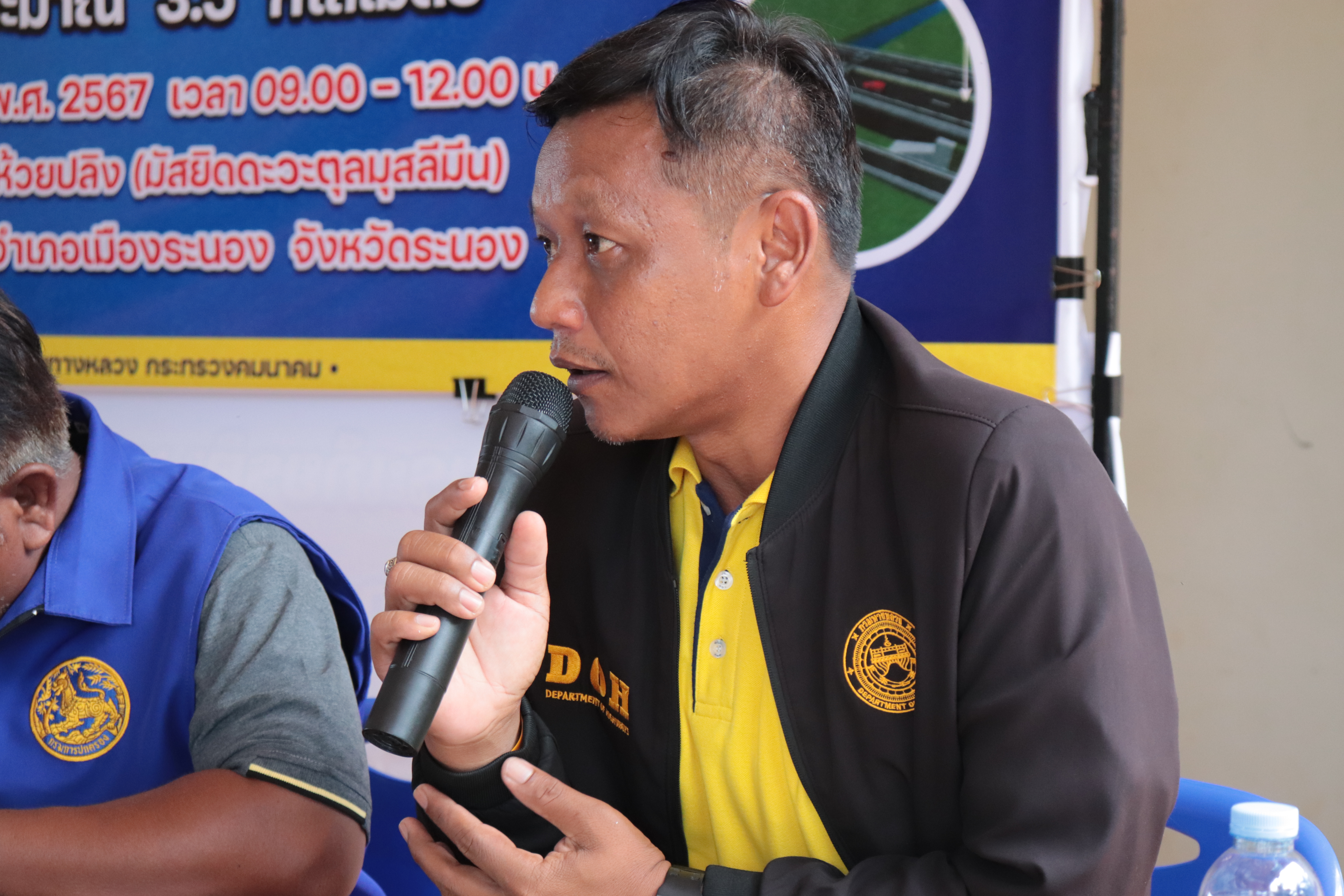 นายปฏิวัติ ทวีทรัพย์ หัวหน้าหมวดทางหลวงกะเปอร์ นายภูเมธ ปุนทะมุณี วิศวกรโยธาชำนาญการพิเศษ