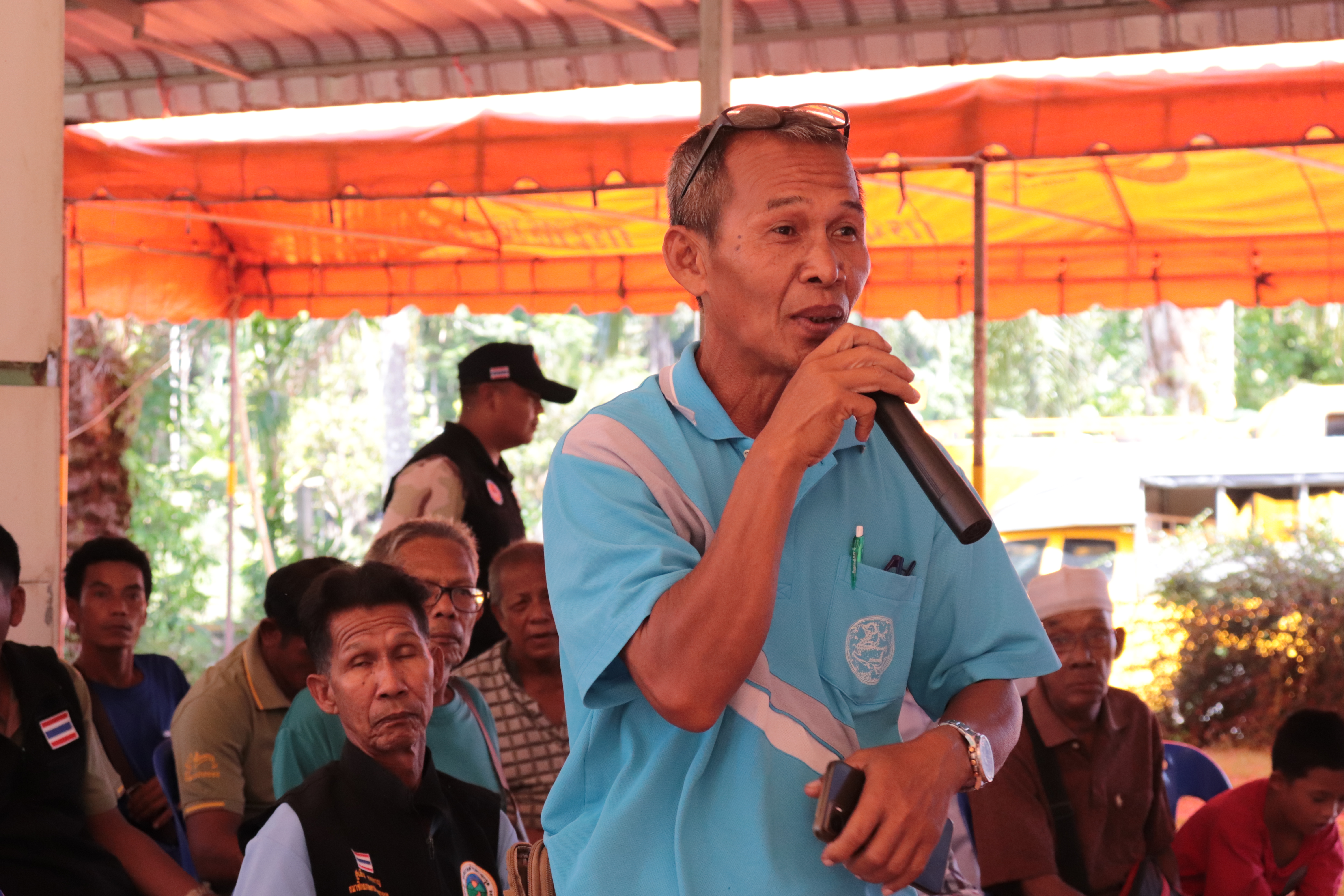นายวรรณะ ใยแก้ว นายกเทศมนตรีตำบลราชกรูด และผู้นำท้องถิ่น ร่วมประชุมการมีส่วนร่วมของประชาชน