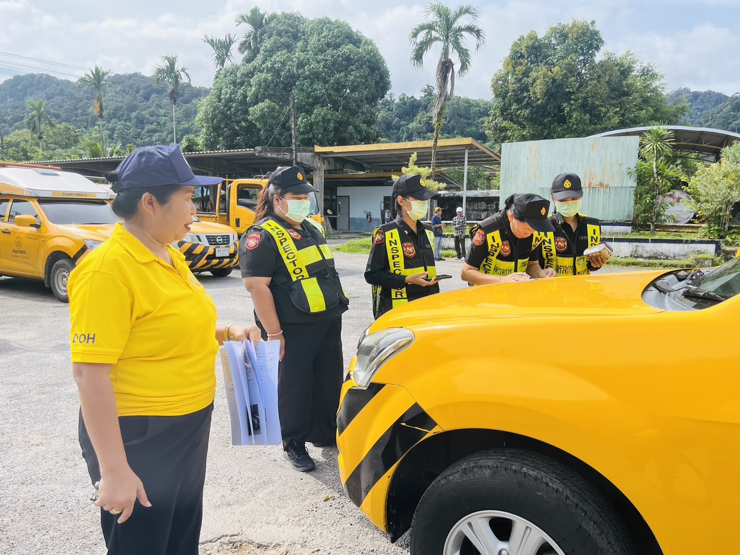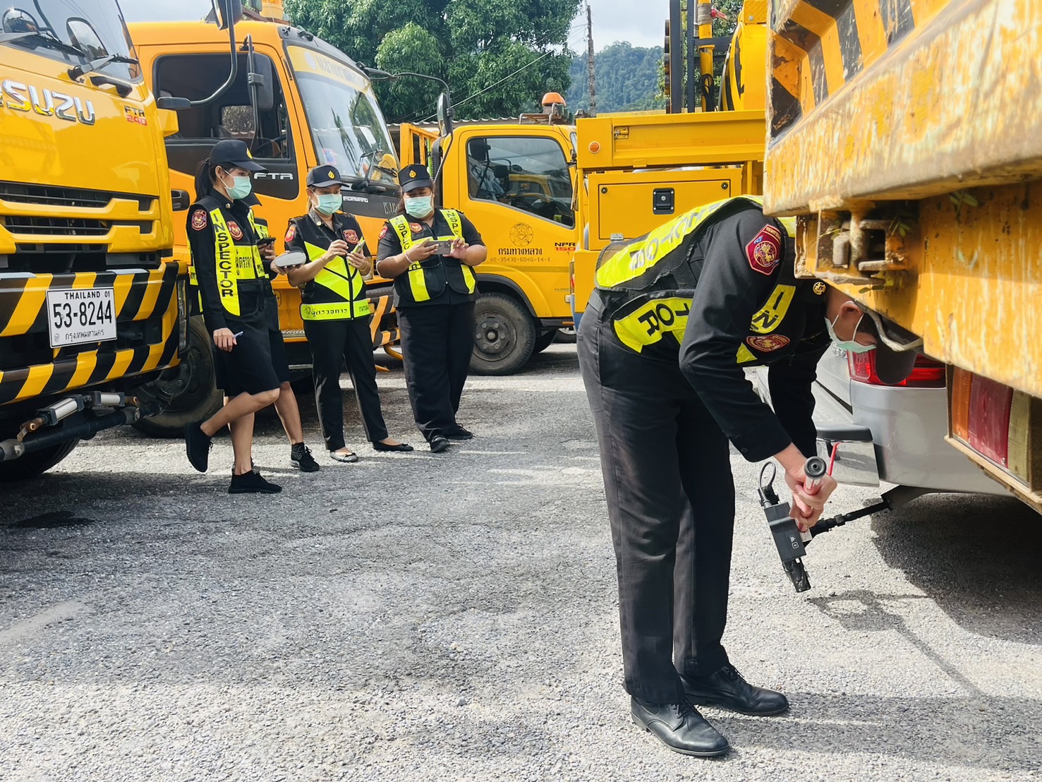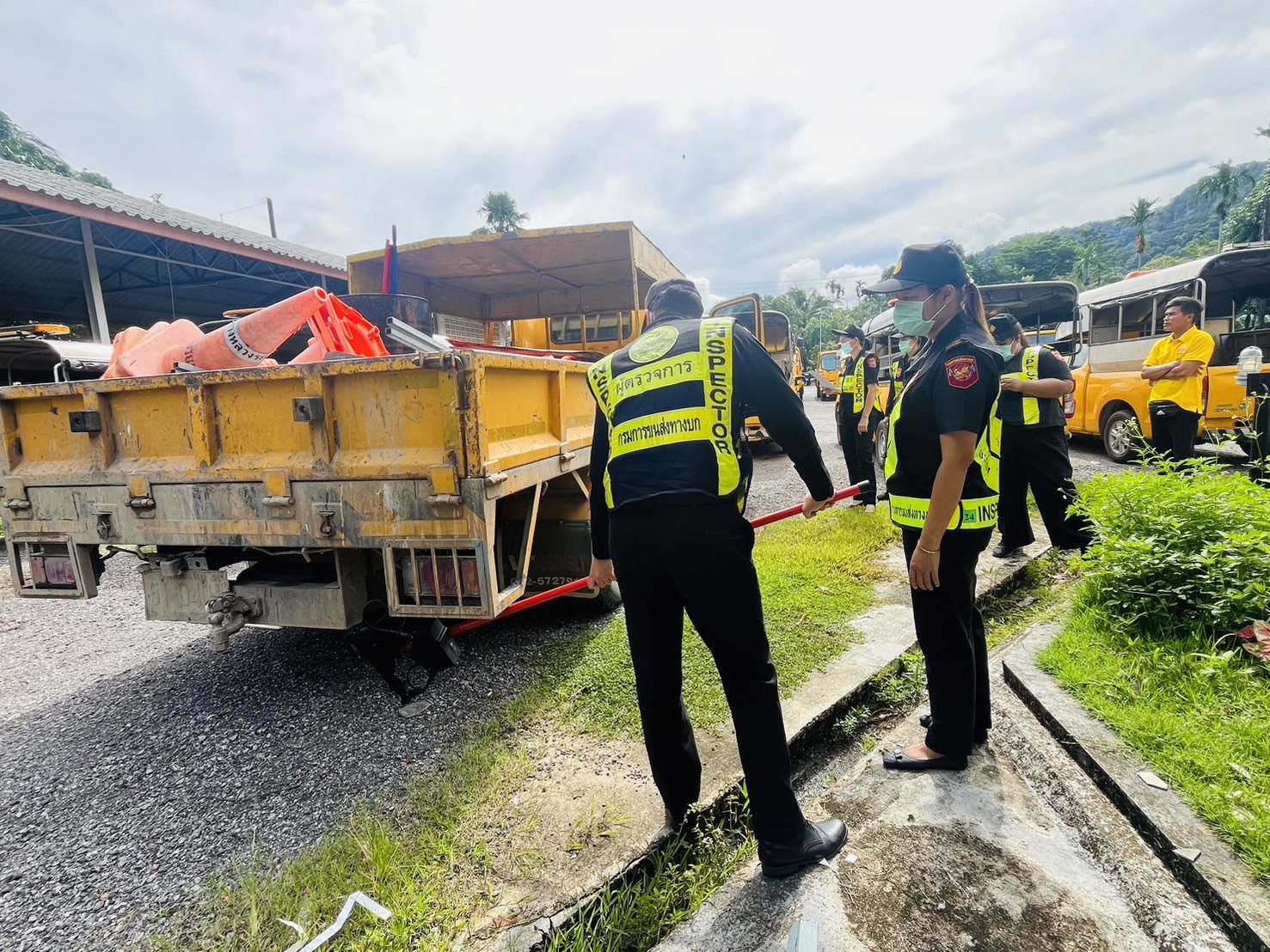 เจ้าหน้าที่สำนักงานขนส่งจังหวัดระนอง เข้าดำเนินการตรวจสอบสภาพรถ