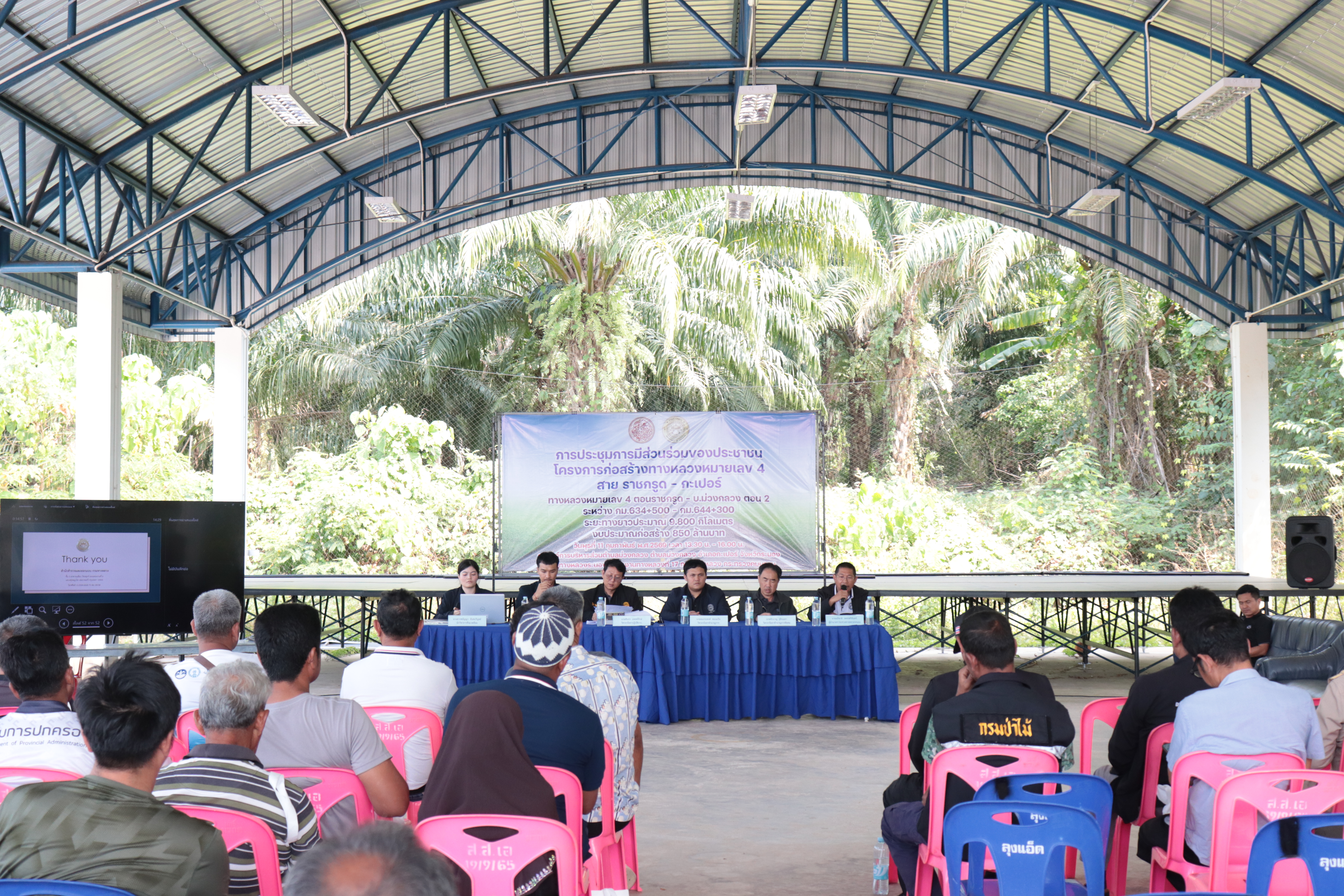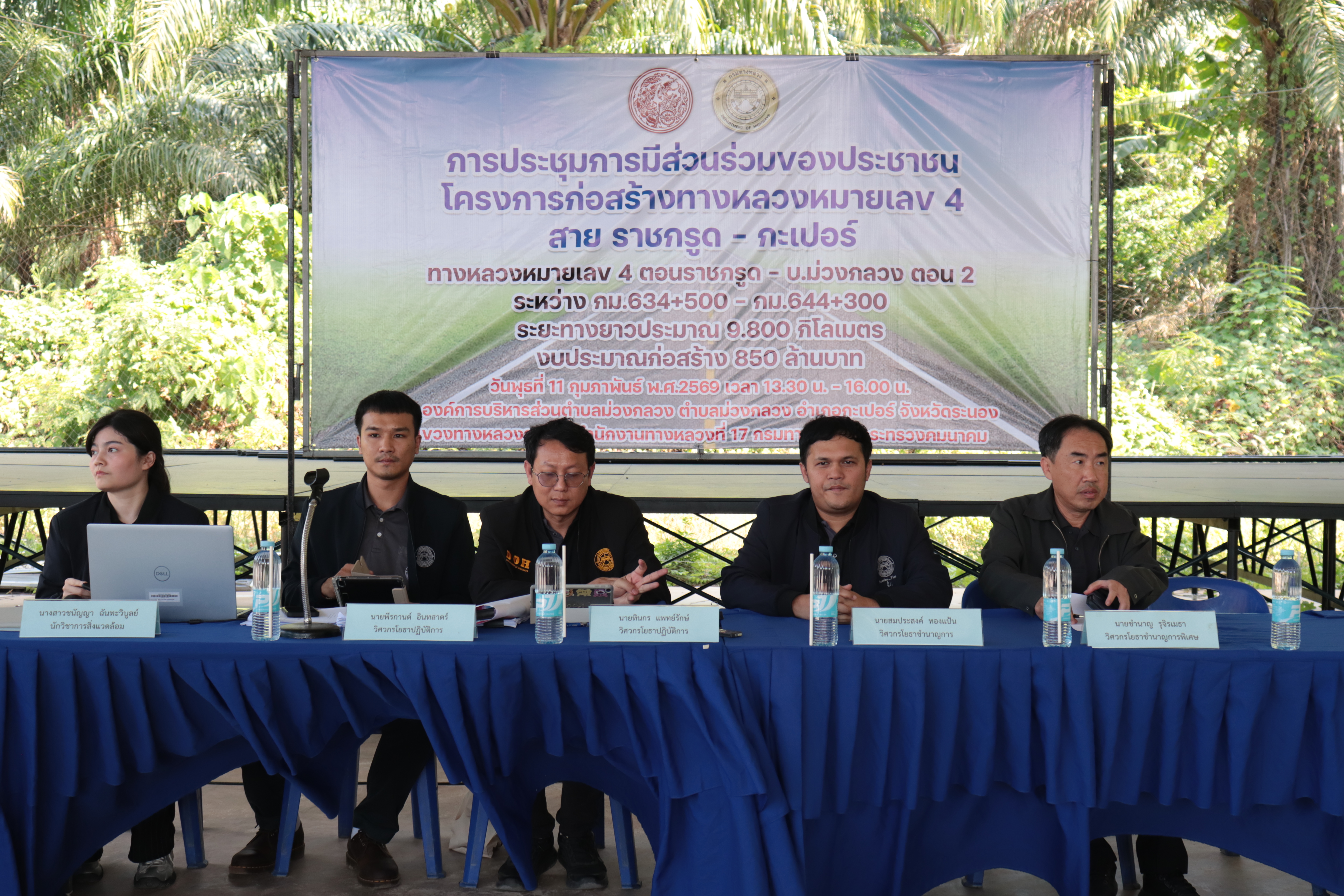 แขวงทางหลวงระนอง ดำเนินการประชุมการมีส่วนร่วมของประชาชน โครงการก่อสร้างขยาย 4 ช่องจราจร บนทางหลวงหมายเลข 4 สาย ราชกรูด - กะเปอร์ ตอน ราชกรูด - บ.ม่วงกลวง ตอน 1 ระหว่าง กม.618+900 - กม.631+000 และ ตอน 2 ระหว่าง กม.634+500 - กม.644+300