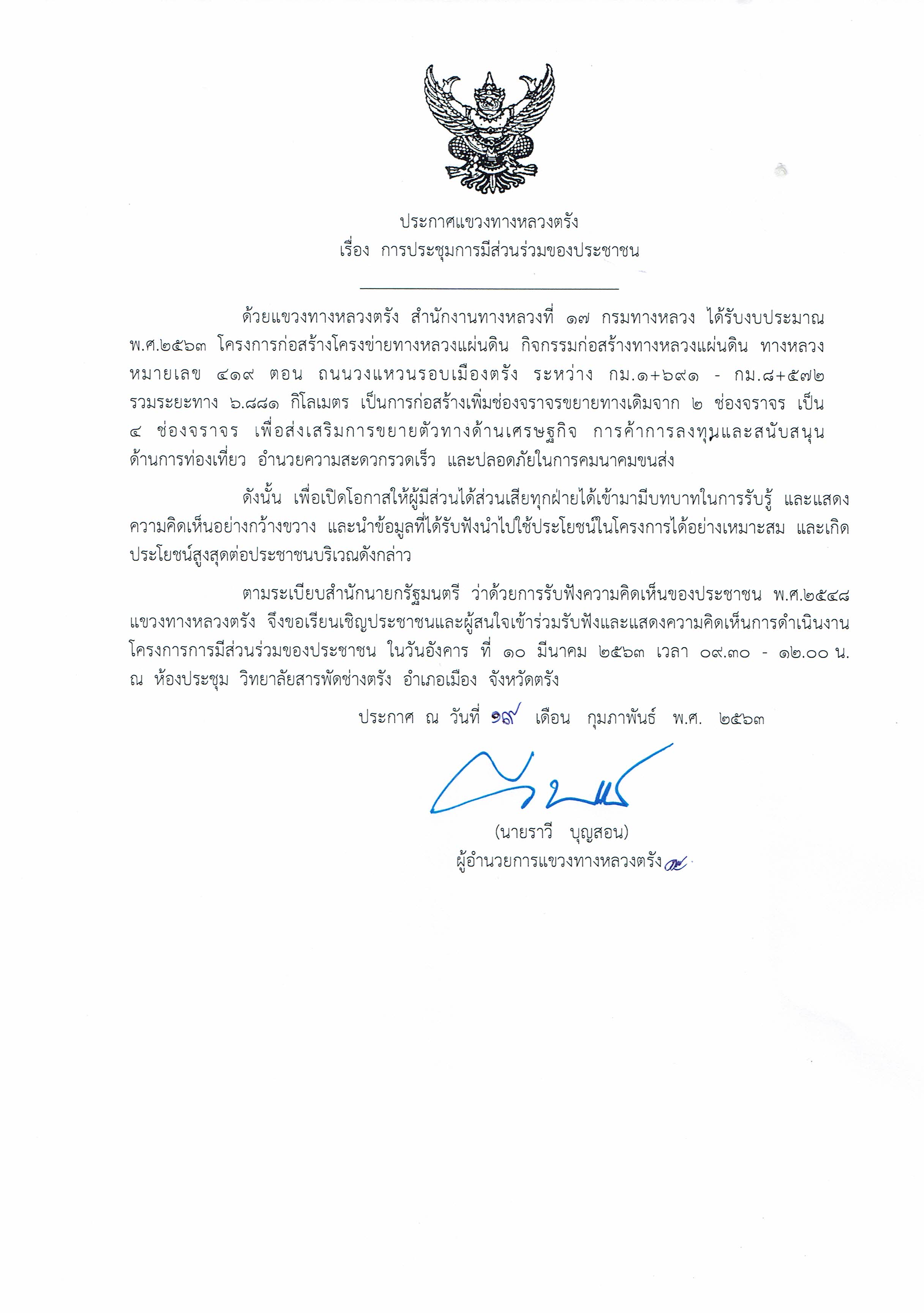 ขอเชิญเข้าร่วมประชุมการมีส่วนร่วม