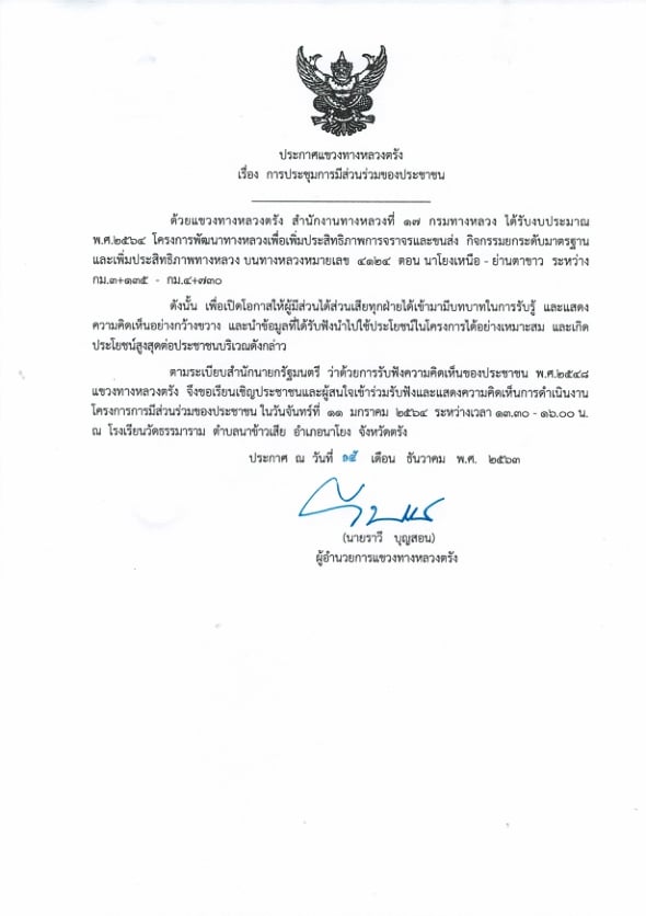 โครงการพัฒนาทางหลวงเพื่อเพิ่มประสิทธิภาพการจราจรและขนส่ง กิจกรรมปรับปรุงทางหลวงผ่านย่านขุมขน ทางหลวงหมายเลข 4124 ตอน นาโยงเหนือ - ย่านตาขาว ระหว่าง กม.3+135 - กม.4+730