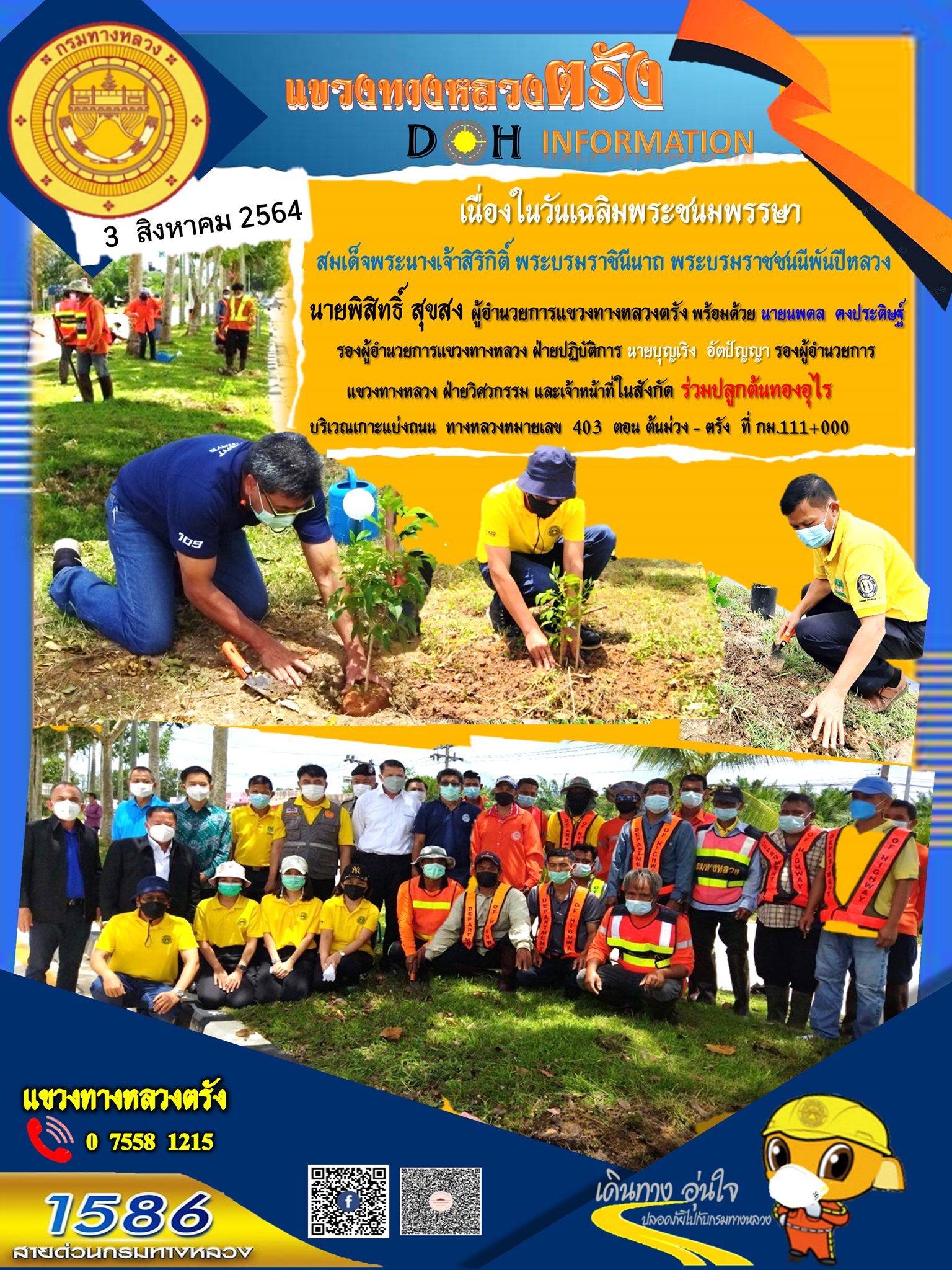 ร่วมปลูกต้นทองอุไร บริเวณเกาะแบ่งถนน ทางหลวงหมายเลข 403 ต้นม่วง - ตรัง ที่ กม.111+000