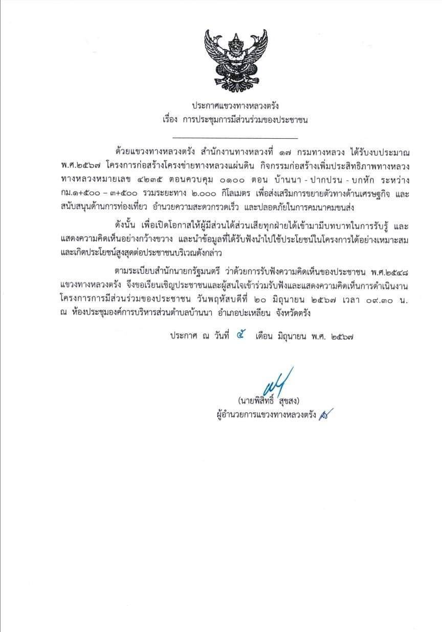 ขอเชิญเข้าร่วมประชุมการมีส่วนร่วมรับฟังความคิดเห็นของประชาชน